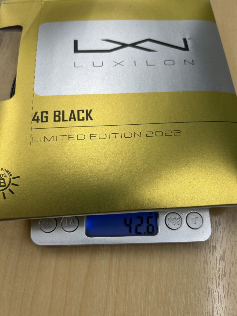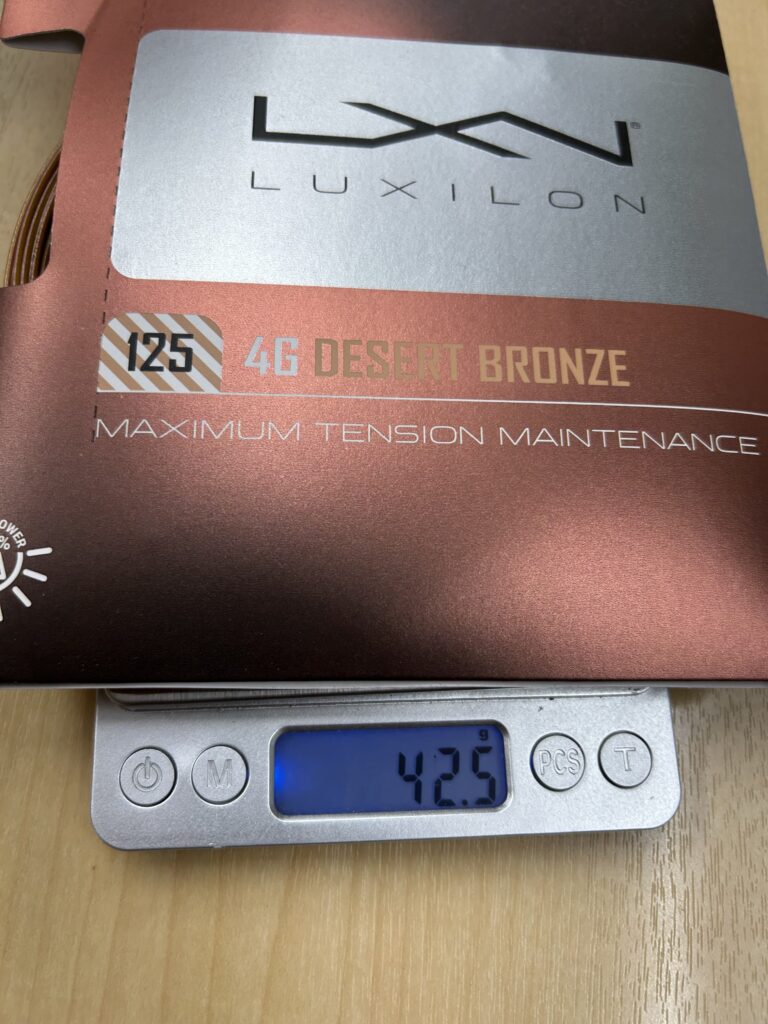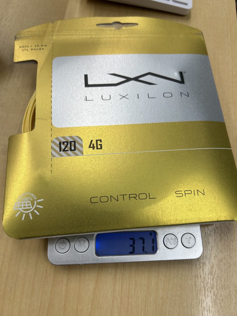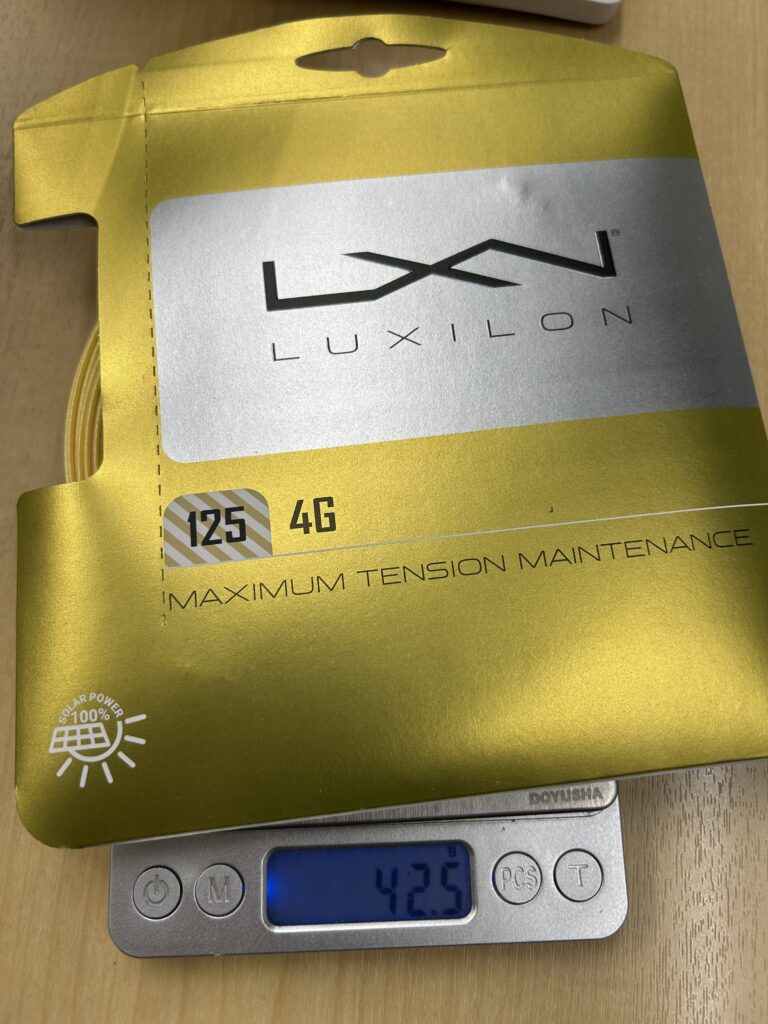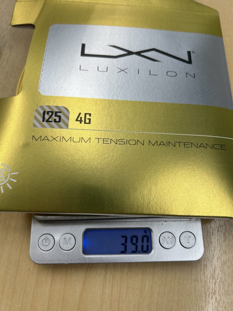 流石に、パッケージを剥いて計測はしていませんので、この差がストリング単体からくるものなのか、はたまたパッケージが途中で切り替わったのか…直接的な原因はわかりませんが、120と比較して5g変わるとなると、振り感も結構変わると思います。