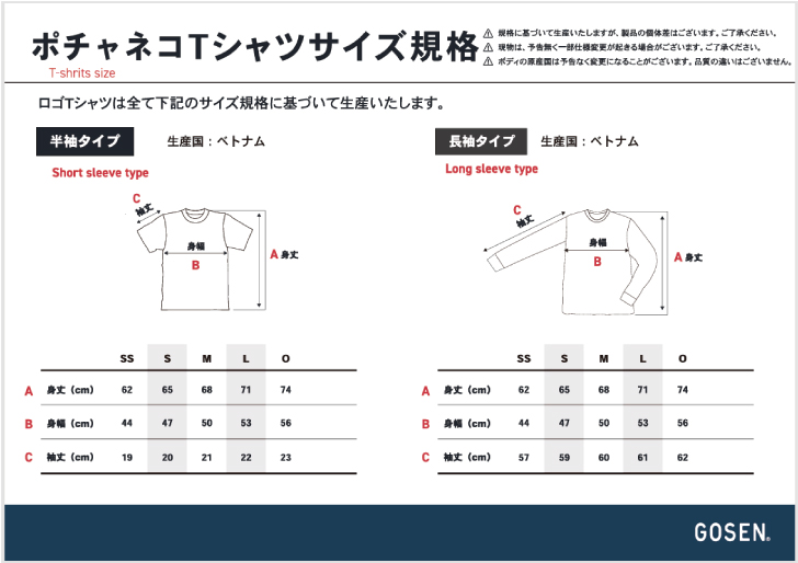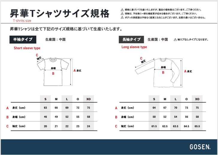 ウェアにつきましては、注意点がございまして、それぞれの生産国が異なり、サイズ寸法が異なります。
