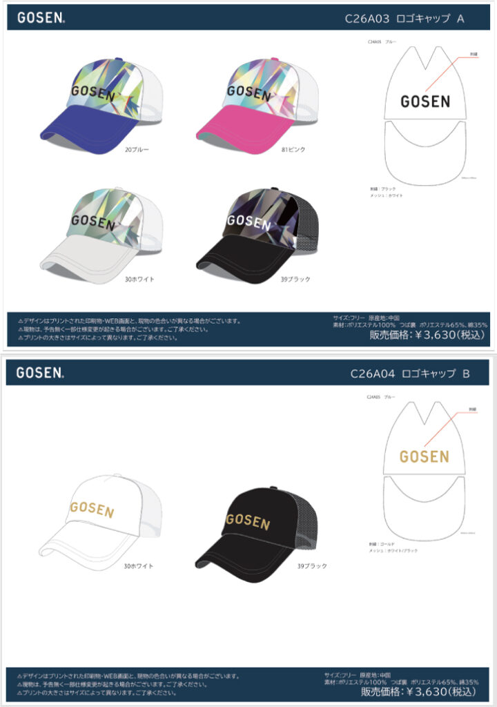 あとはキャップなのですが、この度はALL JAPANが外れて、GOSENのみとなりました。