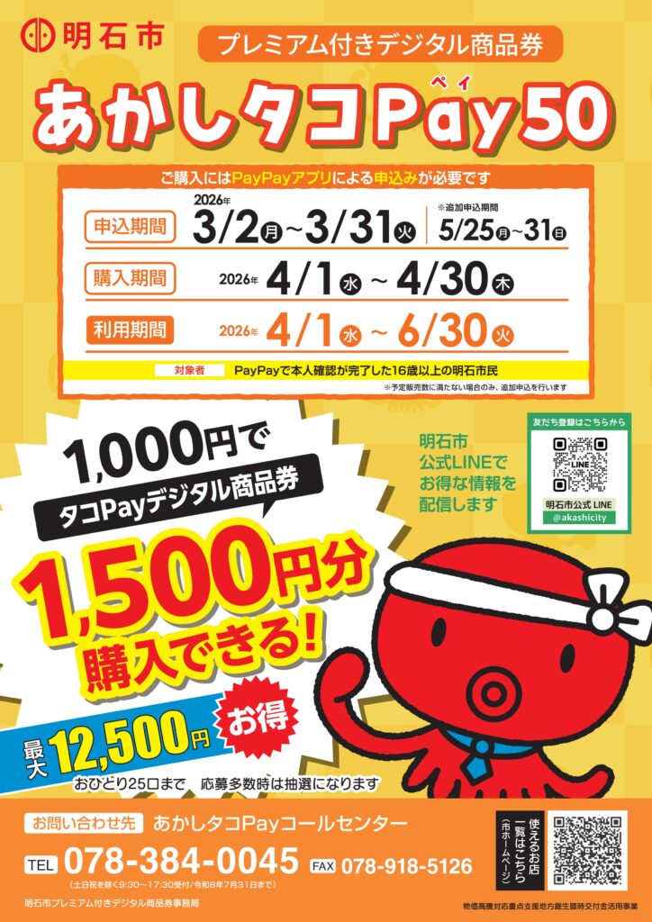 ということで、あかしタコPayのご案内でした。